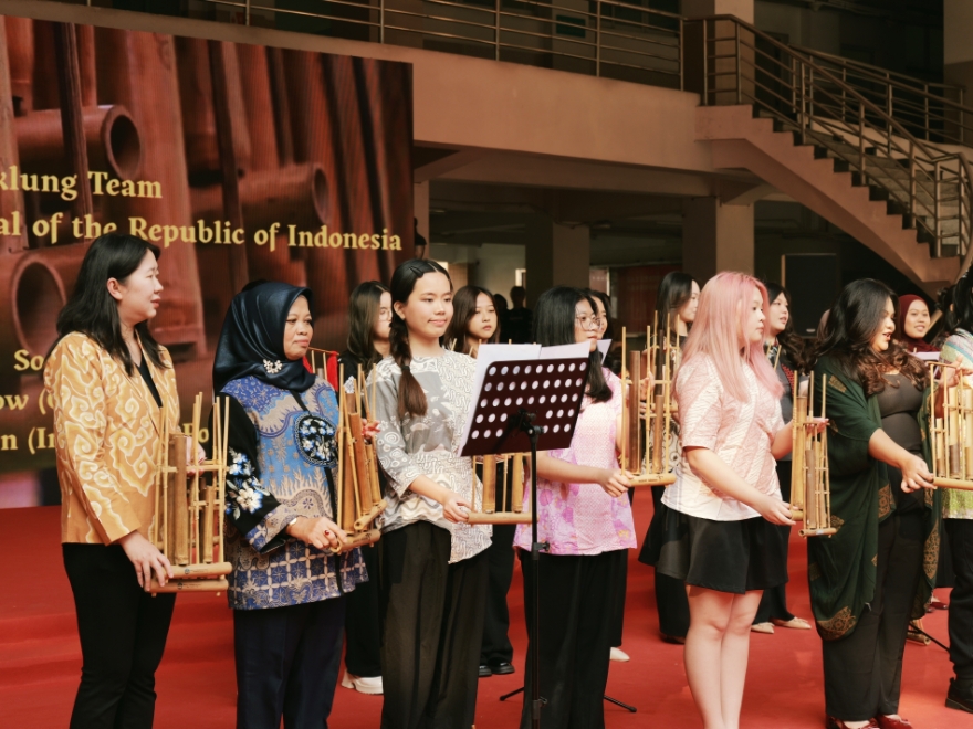 印度尼西亚留学生们携手演绎传统竹制乐器昂格隆,这一被联合国教科文组织认定为人类非物质文化遗产的乐器,以“一人一音、多 人协作”的独特方式,奏响两首经典曲目,乐声清脆悦耳。身着酷炫黑衣的韩国舞者则用三支律动感十足的K-pop舞蹈点燃全场,利落的舞姿、整齐的动作与富有冲击力的编排,将现场气氛一次次推向高潮。