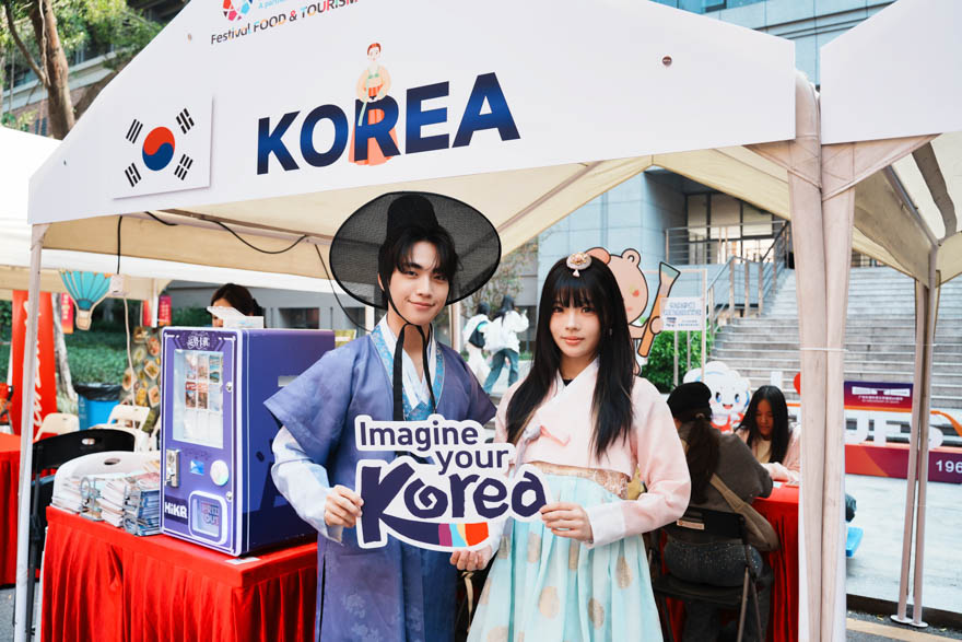 韩国留学生在摊位前合照
