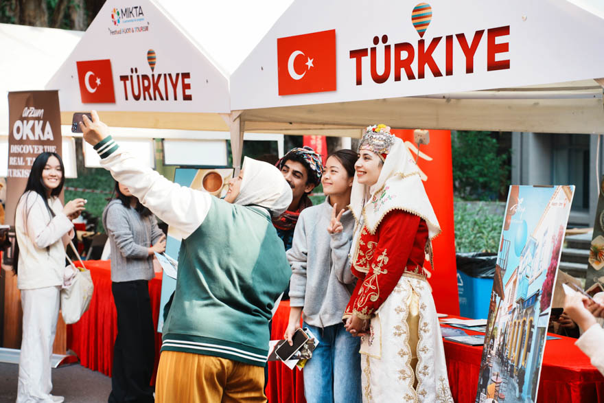 活动期间,师生们手持各国美食穿梭于展位之间,或驻足欣赏民俗表演,或与留学生畅谈饮食文化。在馥郁的香气与热烈的掌声渐渐散去之后,五国文化的交融与青年之间的友谊仍在延续。来自亚非学院的陈可韾、周栩洁在体验了韩国摊位的丰富美食后,又被土耳其歌舞表演深深吸引。她们表示:“土耳其的歌舞表演浪漫又震撼,中奖获得的红酒、日历、保温杯等特色礼品更是满满的惊喜”。印度尼西亚留学生魏梅花分享了自己的故事。从小学习中文的她对中华文化充满热爱:“这样的文化节让我们有机会近距离交流,既能展示印尼文化,也能深入了解中国。”在她看来,美食节不仅是展示自我的舞台,更是建立友谊的起点。