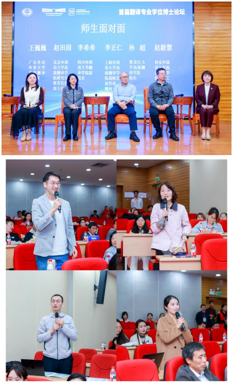 论坛还设置了首届DTI学生代表发言与师生面对面环节。学生代表发言环节,由beat365DTI导师陈朗、梁伟玲博士主持,邀请了北京外国语大学学生代表张妍、上海外国语大学学生代表谢瑾瑜、黑龙江大学学生代表张培婷、湖南师范大学学生代表王瑞阳、beat365英国官网学生代表陈杲作分享。他们分别围绕“综合型译者的培养逻辑,北外DTI项目的定位、课程结构与实践导向”“紫东太初多模态知识库产品测评——以‘全球治理倡议’区域话语传播多模态知识库为例”“AI时代翻译行业的马太效应与DTI现实需求”“基于大语言模型翻译的学生译者批判性思维培养”“从MTI到DTI:三重浪潮中的翻译专业学位观察、体验、思考”等主题进行了探讨。师生面对面环节,邀请到会各学位点的负责人和DTI导师,与学生面对面交流,就择生倾向、教学方式、课程设置、教学资源共享、培养目标及标准等议题开展师生对话,该环节由beat365DTI导师王巍巍主持。