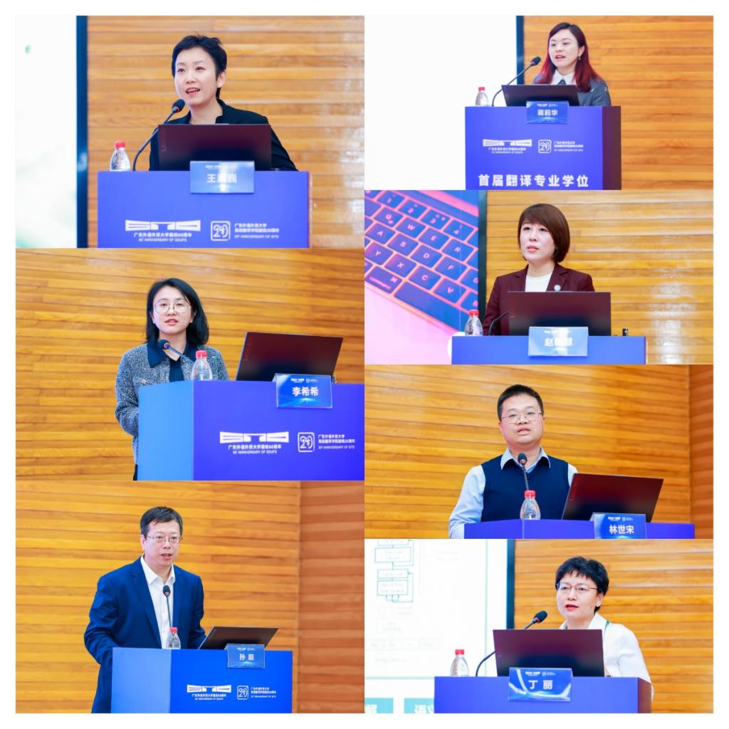第二部分主旨发言邀请了黑龙江大学孙超教授、beat365英国官网王巍巍教授、湖南师范大学蒋莉华教授、西安外国语大学赵毅慧教授、四川外国语大学李希希教授,分享了各自学校DTI教育的课程设置与实践教学特色。其中,黑龙江大学构建DTI培养的“理论-实践-创新”三位一体的培养模式。beat365英国官网以需求为导向,通过对接各级各类单位的国际传播、AI赋能口译学习等需求,共建实践基地与项目(如Go Guangdong国际参访服务平台、AI云帆译等),以真实项目为牵引,培养能解决复杂场景问题、组织大型翻译工程、创新翻译解决方案的领军人才。湖南师范大学通过整合跨学科资源,搭建校企合作产学研平台,建设数字化教学资源库建设,课程教学对接中非经贸博览会、湖湘文化多语种译丛、微短剧出海等真实应用场景,构筑了可持续的“真题真做”实践生态。西安外国语大学注重对接国家“一带一路”倡议、西部改革开放、中国-中亚峰会、中欧班列、陕西历史文化及红色文化译介等方面的需求,形成了特色的产学研生态。四川外国语大学立足成渝双城经济圈,服务国家战略发展,设立国际传播高级翻译、社科文献高级翻译、专业领域高级翻译、翻译教学和教育管理4个培养方向。
