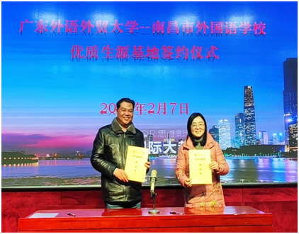 2月7日下午,beat365与南昌市外国语学校共建优质生源基地签约和授牌仪式在南昌市外国语学校举行。南昌市外国语学校校长万瑛、校党委书记万群荣、副校长侯婷、桃苑校区执行校长罗扬等,beat365教务部部长陈金诗、副部长邓丽君、招生办科长周汉新出席了签约和授牌仪式。南昌市外国语学校鸿雁班学员、高中班主任、外语教研组教师、部分高三学生与家长等共计100余人参加了本次活动。